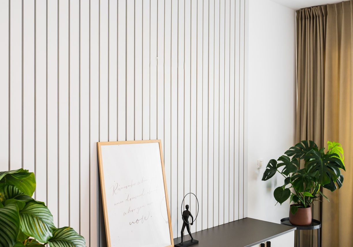 Un apartament modern, unde tonurile neutre, alăturate liniilor clare și detaliilor de riflaj, tapet, tapițerie și mobilier custom, definesc o atmosferă echilibrată și coerentă. Beneficiarii și-au dorit un spațiu simplu, confortabil și funcțional, dar în același timp personalizat prin câteva accente de culoare preferate și zone parțial la vedere, dedicate obiectelor decorative și plantelor.